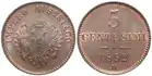 Сольдо | 5 чентезимо | 8,75 г | 24 мм | Медь 990‰ | гладкий | 1822 | 1850 | — | |