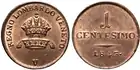 Чентезимо | 1 cent. | 1,75 г | 18 мм | Медь 990‰ | гладкий | 1822 | 1846 | — | |