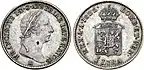 ¼ лиры | 25 чентезимо | 1,62 г | 16 мм | Серебро 600‰ | гладкий | 1822 | 0,20 L. | ||