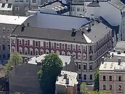 Здание гимназии, спроектированное и построенное в 1868—1871 годах архитектором Янисом Бауманисом. Располагалось по адресу Бульвар Наследника, 29[2]. Больше половины средств на строительство были собраны как пожертвования и накоплены самой гимназией[3]. В 1938 году здание было кардинальным образом перестроено архитектором Индриком Бланкенбургом. В советское время в нём был размещён Вычислительный и информационный центр ЛГУ им. П.Стучки и музей истории университета[4].