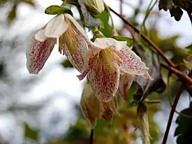Вечнозелёный кустарник с усиками, цепкое растение, до 4 м и более в высоту. Листья объединены в пучки. Цветы, колокольчатые и подвесные, одиночные или в группах по 2 или 3, пахнут мёдом, большие, на длинной ножке, желтовато-белые, мохнатые, иногда усеяны красным. Цветёт зимой и весной (февраль-март). Плоды семянки.