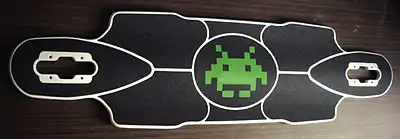 Шкурка (гриптейп, наждак) — клейкая лента с абразивным покрытием, крепящаяся к верхней стороне деки. Различается размером фракции абразива.
