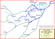 В начале XX века LSWR запустила программу электрификации пригородных маршрутов с использованием третьего рельса с напряжением 600 В постоянного тока. В итоге вся пригородная сеть была переведена на электрическую тягу. Грузовые перевозки, особенно из западной части страны, имели большое значение, но стремление к электрификации пригородного сообщения привело к более слабому развитию паровой тяги для пассажирских и грузовых перевозок в Девон и Корнуолл, а также в Портсмут, Борнмут и Уэймут.