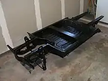 У автомобилей, вагонов и локомотивов два лонжерона, соединённые поперечными элементами, представляют собой металлический короб сложной формы, образующий раму (шасси), служащую опорой для безрамного кузова, а также для крепления рессор, колёс и других деталей. Иными словами, лонжерон — труба из металла, которая имеет прямоугольное сечение, чаще всего это парная деталь — для задней и передней части.[1]