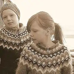 Исландские девочки, одетые в лопапейса.