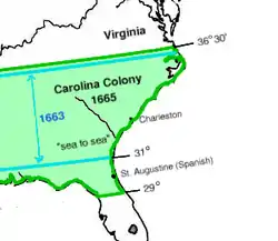 Они запросили у короля грант на владение землями, которые находились к югу от колонии Вирджиния и который король считал своей собственностью. К этой территории относились и Албемарлские поселения. Король дал своё согласие и 24 марта 1663 года издал хартию, которой повелел создать отдельную провинцию на землях между 31-й и 36-й параллелями. Западная граница земель не была оговорена, было сказано, что колония будет простираться от Атлантического океана до «Южных Морей»[''i'' 1]. Позже выяснилось, что Албемарлские поселения не попадают в эти границы, и была издана новая уточняющая хартия от 30 июня 1665 года. Поскольку в гранте 1629 года земля была названа «Каролиной», то король решил оставить это имя. Согласно хартии, колония будет принадлежать истинным и абсолютным Лордам-собственникам («the true and absolute Lords Proprietors»)[4].