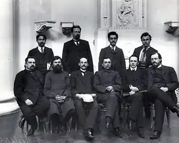 Члены Государственной Думы II созыва от Черниговской губернии. Стоят: Н. В. Дементьев, Н. К. Рубисов, Ф. И. Приходько, В. И. Хвост; сидят: П. П. Юренев, Т. С. Веремеенко, А. Г. Лосик, П. А. Трофименко, М. А. Искрицкий, В. В. Волк-Карачевский