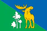 «Зелёный щит московской формы скошен справа: верхнее поле голубое, нижнее зелёное. В щите — золотая фигура лося, сопровождаемая справа тремя силуэтами серебряных деревьев. На золотой ленте зелёными буквами название — „Лосиноостровский“».
