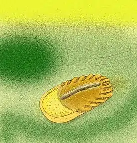 Удлинённое овальное тело, состоит из головы и туловища, разделённых узкой канавкой. Голова полукруглая, длина — около 0,3 от общей длины тела. Края туловища разделены на короткие изомеры, расположенные под углом к продольной оси тела. По туловищу, вдоль оси тела, проходит ещё одна узкая канавка. Область головы и область туловища, исключая изомеры и канавку, покрыты многочисленными бугорками[1].