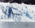 Часть 100-метровой стены ледника Спегаццини падает в озеро