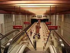 Станция украшена мотивами, вдохновленными темой доколумбовых культур существовавших на территории Южной Америки. Они были сделаны художниками Армандо Дилоном и Марией Эггерс. На платформе можно увидеть гигантскую золотую маску с мотивами культуры Чиму - существовавшей на севере Перу. Маска была построена по проекту Эктора Пинола, бывшего сценографа работавшего в театре Колон. В октябре 2007 года, компания Metrovías установила на станции телевизор[2].