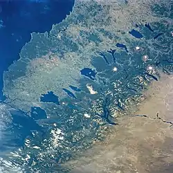 Предгорья Анд (Прекордильеры) — живописный регион на западе области, между центральной долиной и основным хребтом Анд. Отличительной особенностью местных ландшафтов является совокупность озёр ледникового происхождения, проходящих цепочкой с севера на юг и большое количество вулканов, покрытые вальдивскими лесами. В этом районе расположено несколько национальных парков.