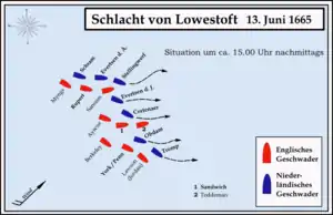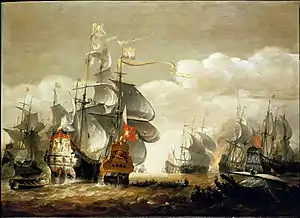 ![]() The Battle of Lowestoft, 13 June 1665, showing HMS Royal Charles and the Eendracht by, painted c. 1665 | |||
