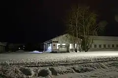 Вокзал станции Лоухи ночью.