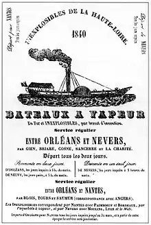Вскоре после начала XIX-го века между Нантом и Орлеаном начали курсировать пассажирские пароходы. К 1843 году 70 000 пассажиров перевозились ежегодно в нижней Луаре и 37 000 в верхней Луаре[25]. Но конкуренция со стороны железной дороги, начавшаяся в 1840-х годах, вызвала спад в речных перевозках. Предложения по развитию полностью судоходной реки до Бриара были отвергнуты. Открытие бокового канала Луары в 1838 году позволило продолжить навигацию между Дигуэном и Бриаром[26], но пересечение реки в Бриаре оставалось проблемой до строительства бриарского акведука в 1896 году. Это сооружение длиной 662 метра было самой длинной подобной конструкцией в мире, и оставалось таковой в течение достаточно долгого времени[26].