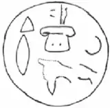 ![]() Прорисовка обратной стороны иероглифической печати, найденной в культурном слое Трои VIIb. |
