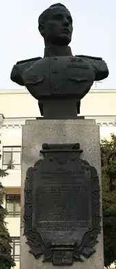 - В Алма-Ате установлен бюст на постаменте, расположен на пр. Абылай-хана, между ул. Айтеке би и Гоголя.