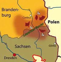 Активная разработка месторождения во времена ГДР привела к изменению территории традиционного расселения лужичан[2]. Добыча угля привела к уничтожению больших площадей сельскохозяйственных угодий, которые были основой культурно-социальной жизни лужицкого народа. Было разрушено около ста сельских населённых пунктов[3] и население этих деревень, в основном серболужицкое, было расселено в немецкоязычных городах, что привело впоследствии к активной и скорой ассимиляции значительного числа лужичан среди немецкого населения.