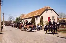 Серболужицкие праздники подверглись значительному немецкому влиянию. Лужичане, как и другие народы Европы, отмечают христианские праздники. На пасху красят варёные яйца, которые дарят детям. По яркости и разнообразию они уступают крашеным яйцам словаков, украинцев и южнославянских народов[78]. На день святого Петра — 22 февраля сжигали соломенное чучело зимы[79]. С 1541 года известно проведение пасхальной кавалькады, когда мужчины во фраках и цилиндрах верхом на лошадях отправляются с вестью о воскресении Иисуса Христа. Процессию возглавляют всадники с хоругвями, статуями и распятиями[80]. Отмечался и день святого Иоанна Крестителя — 24 июня. На Иванов день гадали и прыгали через костры. В отличие от других народов Европы у лужичан не было обрядов, связанных с водой[81]. Праздник урожая, известный во всей Германии, отмечался в августе—сентябре. В Верхней Лужице празднество возглавляли состоятельные крестьяне. Бедные крестьяне и батраки поздравляли хозяина и дарили ему венок в благодарность за хлеб и работу. В Шпревальде совершался обычай «рвать петуха» и «бить петуха». По поверьям лужицких сербов, после уборки урожая петух, наделённый силой охранять урожай, выполнил свою задачу и должен быть убит, иначе он причинит зло[82]. Осенью отмечали день святого Михаила — 29 сентября, праздник «всех святых» — 1 ноября, детский праздник Мартинов день — 11 ноября[83]. С 1875 года отмечается праздник лужицкой молодёжи скадованка[84].