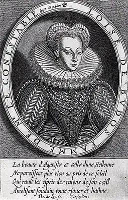 В 1592 году Генрих I де Монморанси, взял с собой Луизу де Бюдо и её мать в Пезенас. Однажды бедная женщина попросила у них милостыню, Луиза настояла на том, чтобы её мать согласилась на это, и нищая поблагодарила девушку, подарив ей маленькое кольцо, которое она сказала надеть на герцога Монморанси, и что его доброе сердце будет награждено.