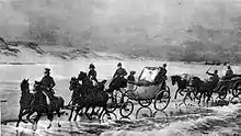 Фридрих Вильгельм III и Луиза находились недалеко от поля битвы, в хаосе разгрома они были вынуждены спасаться разными дорогами. Луиза с детьми, своим личным врачом Кристофом Вильгельмом Гуфеландом и графиней Фос с многочисленными остановками в Ауэрштедте, Веймаре и Бланкенхайне добралась до Кёнигсберга. Там она тяжело заболела «нервной горячкой», как тогда называли тиф. Пока Луиза болела, Наполеон со своей армией вышел на Кёнигсберг. Гуфеланд предложил остаться с королевой, но она отказалась: «Я лучше отдам себя в руки божьи, чем этого человека».[9] Дальше бежать оставалось только в Мемель, находившейся на крайнем севере страны. В сильный мороз и метель тяжелобольная Луиза с детьми и обслугой отправилась в путь по практически непроходимой в зимнее время Куршской косе. Через три трудных дня и холодных ночи путники достигли места назначения, и Гуфеланд с удивлением даже констатировал некоторое улучшение в состоянии королевы. Этот эпизод, наряду с её встречей с Наполеоном, рассказываемый и изображаемый с большей или меньшей долей драматизма, прочно вошёл во все биографии и легенды, посвящённые королеве Луизе.