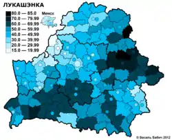 Лукашенко переизбирался на пост президента на выборах 2001, 2006, 2010, 2015 и 2020 года. Результаты выборов 2020 года вызвали массовые акции протеста. Европейский союз, Канада, США, Великобритания, Украина и ряд других стран отказались признавать Лукашенко легитимным президентом[8][9].