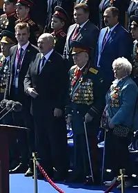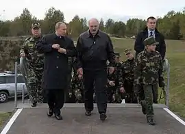 Алекса́ндр Григо́рьевич Лукаше́нко (белор. Аляксандр Рыгоравіч Лукашэнка; род. 30 августа 1954[5][6][7][…], Копысь, Оршанский район, Витебская область, Белорусская ССР, СССР) — белорусский политический, государственный и военный деятель. Президент и Главнокомандующий Вооружёнными Силами Белоруссии с 20 июля 1994 года.