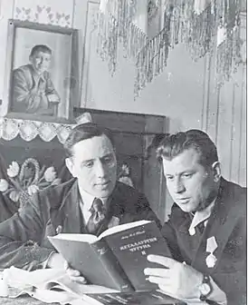 ![]() Лауреаты Сталинской премии Лукашенко (справа) и Арзамасцев, 1945 год | |