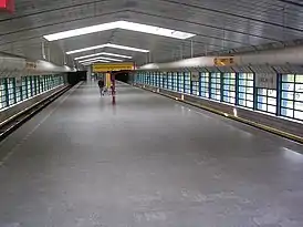 Конструкция станции — наземная-крытая. Это отразилось в необычном интерьере станции — путевые стены полностью застеклены, из-за чего станция выглядит очень светлой и просторной.