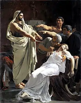 - Виргиния (Древний Рим). Была убита отцом, чтобы не достаться сенатору Аппию Клавдию; её гибель вызвала восстание в Риме, которое восстановило республику.
