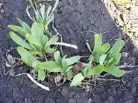 Слева направо: Молодое растение. Нераспустившиеся соцветия на характерно поникающих цветоносах. Соцветие | ||||||||||