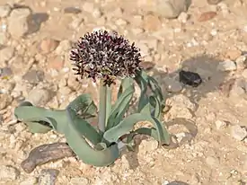 Луковичные растения с соцветием в виде зонтика. Цветки белые с тёмно-фиолетовыми сердцевинами.