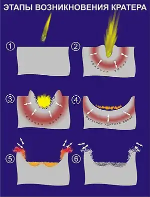 Луна появилась около 4,51 млрд лет назад[6], немного позже Земли. Наиболее популярна гипотеза о том, что Луна сформировалась из осколков, оставшихся после «Гигантского столкновения» Земли и Тейи — планеты, схожей по размерам с Марсом.