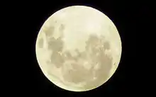 Уменьшение альбедо поверхности в коротковолновой части спектра приводит к тому, что зрительно Луна кажется слегка желтоватой[35].