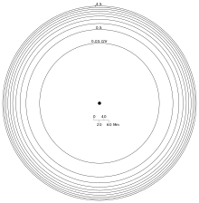 - постепенное удаление Луны от Земли вследствие приливного ускорения (на 38 мм в год)[13][14], таким образом, её орбита представляет собой медленно раскручивающуюся спираль[15].
