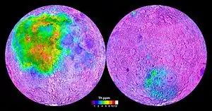 Наилучшие на 2017 год колориметрические изображения поверхности Луны были получены широкоугольной, мультиспектральной камерой WAC космического аппарата LRO с использованием фильтров в трёх цветовых каналах: 689 нм — красный, 415 нм — зелёный, и 321 нм — голубой[31] (описание карты[32]). На цветоделительных изображениях буроватый оттенок имеют центральная часть Моря Ясности, восточная часть Моря Дождей, Море Холода и плато Аристарх. Синий оттенок имеют Море Спокойствия, периферийная часть Моря Ясности, северная часть Моря Изобилия, западная часть Моря Дождей, западная и южная части Океана Бурь. Все эти цветовые особенности отдельных районов Луны подтвердились в дальнейшем[33]. Глаз почти не различает цветовые особенности отдельных деталей поверхности. Применение обычной цветной фотографии также не даёт должного эффекта — лунная поверхность выглядит однотонной[34].
