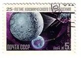 Почтовая марка СССР 1984 года, 25-летие космического телевидения с изображением АМС «Луна-3»