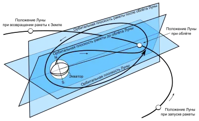 После старта с космодрома Байконур космический аппарат «Луна-3» вышел на сильно вытянутую эллиптическую орбиту искусственного спутника Земли с наклонением 75° и периодом обращения 22 300 мин и обогнул обратную сторону Луны по направлению с юга на север, пройдя на расстоянии 6200 км от её поверхности. Под действием гравитации Луны орбита аппарата изменилась; кроме того, поскольку Луна продолжала двигаться по своей орбите, изменилась и плоскость орбиты космического аппарата. Изменение орбиты было рассчитано так, чтобы аппарат при возвращении к Земле снова пролетел над Северным полушарием, где были расположены советские наблюдательные станции[2]. Траектория полёта была рассчитана под руководством М. В. Келдыша в Математическом институте им. В. А. Стеклова[3].
