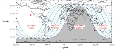 Жители Северной Америки могли наблюдать начало лунного затмения 21 декабря в 1:33 EST (или 20 декабря в 22:33 PST). В этот момент край лимба Луны начал входить в земную тень и соответственно край Луны начал окрашиваться в темно-красные тона. В течение часа вся видимая поверхность Луны покрылась тенью Земли и в 2:41 EST (23:41 PST) началось полное лунное затмение продолжительностью в 72 минуты.