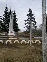 Местная молодежь на площади перед памятником соорудила нечто вроде волейбольной площадки.