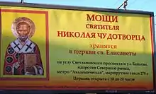 В 2008 году в Санкт-Петербурге появились рекламные щиты с предложением прийти в церковь Святой Елизаветы и поклониться мощам различных святых, в том числе, мощам святителя Николая Чудотворца. В освещавшей события передаче канала НТВ отмечалось, что эта святыня никогда не покидала города Бари. Со ссылкой на информационные агентства канал упомянул заявление представителей Русской православной церкви (РПЦ), что церковь Святой Елизаветы не имеет к РПЦ никакого отношения и что «подобная реклама вводит в заблуждение многих православных христиан»[53]