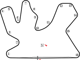 Длина трека составляет 5,4 км, а стартовая прямая превышает длиной 1 километр и составляет 1068 метра. Саму трассу окружает искусственная трава для предотвращения попадания песка на трек.