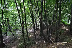 Вокруг замка проходил ров, за которым находился следующий вал высотой 1,5 метра и шириной 4 метра (сохранился с западной и южной сторон). На расстоянии 90 метров от замчища располагался третий, дугообразный вал и ров, окружавшие замок с запада, юга и востока. Внутри вала существовал проезд, около которого сохранилось башенное возвышение[1].