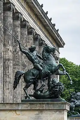 Автор - скульптор Альберт Вольф создал памятник про проекту Кристиана Даниэля Рауха. Скульптура была изготовлена литейным заводом Германа Гладенбека в 1861 году по аналогии с памятником «Сражающаяся амазонка» Августа Кисса (1842) и установлена на западном стороне внешней лестницы ведущей в Люстгартен перед Старым музеем в Берлине. Обе статуи весят каждая около трёх тонн.