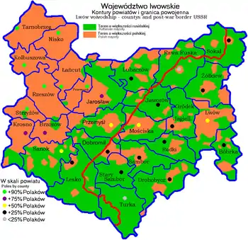 После Второй мировой войны, в соответствии с решениями Тегеранской и Ялтинской конференций, территория области частично осталась в составе УССР — в октябре 1944 года к Польше перешли следующие районы Львовской области: