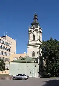 В 1939 г. сама церковь была уничтожена немецкой бомбой, осталась лишь башня-колокольня с барочным завершением, на которой находятся уникальные часы, пожертвованные в XVII в. гетманом Иваном Выговским Манявскому скиту и позже перевезенные и установленные на Святодуховской колокольне в XVIII в.