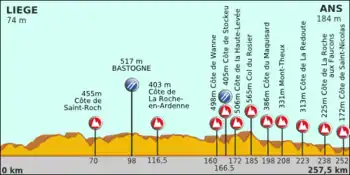 На второй половине маршрута присутствуют многочисленные подъёмы, такие как Стокё, От-Лёве, Ла-Редут и Сен-Никола, которые заканчиваются в пригороде Льежа Ансе. На последних 15 км курса происходит замечательный переход от луговых и аграрных ландшафтов Арденн к постиндустриальному городскому пейзажу Льежа.