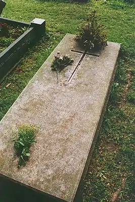 ![]() Могила К.С. Льюиса рядом с церковью Святой Троицы, в которой также похоронен Уоррен Льюис. | |