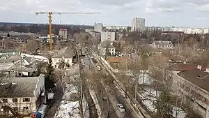 С непарной стороны между улицами Ивана Мазепы и Ивана Богуна расположена многоэтажная жилая застройка, далее между улицами Ревуцкого и Рудого — усадебная застройка (район Красный Хутор). Есть участки нежилой застройки.