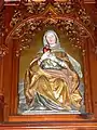 - XIV век: фигура может высоко держать сердце, будто предлагая его Богу. Иногда прибавляются атрибуты земного милосердия (рог изобилия или корзина с фруктами).
